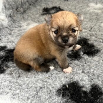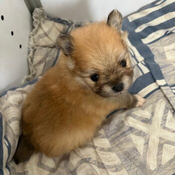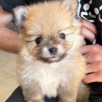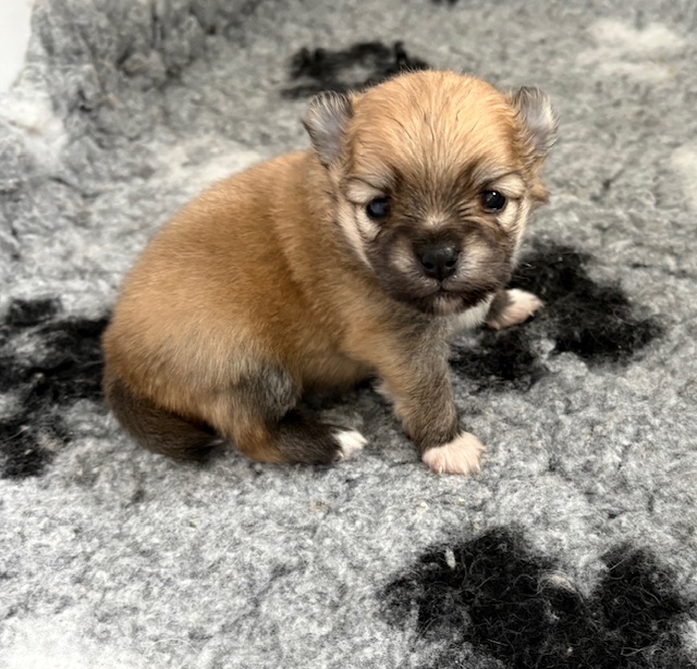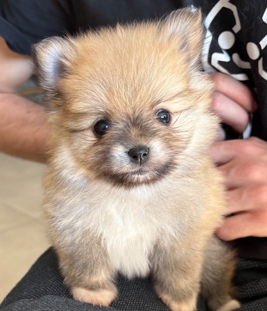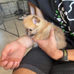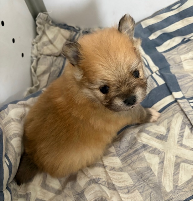 Une adorable femelle spitz naine. Maman Téquila, spitz naine tricolore ne pèse que 3kg autant que le papa Virus.