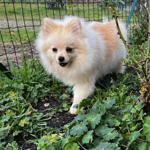 Rhéa est une très belle spitz de taille moyenne. Elle est le nounours de l’élevage.